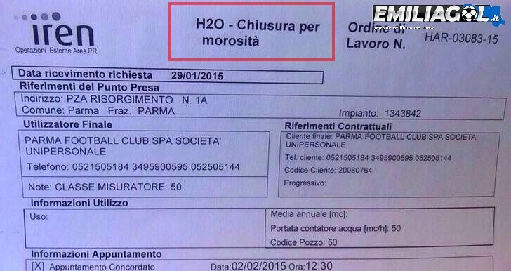 SCOOP - La morosità del Parma Calcio nei confronti di Iren era bellamente appesa davanti al Tardini. Questo sta a significare che l'Iren non ha saputo o potuto rintracciare nessuno della Società? Il dubbio è importante, poichè solo dopo questa affissione e il relativo taglio dell'acqua, qualcuno ha pensato bene di pagare la bolletta.