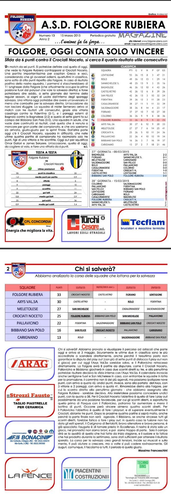 Magazine Folgore R. - Con i Crociati sono 6 punti - Chi si salverà?