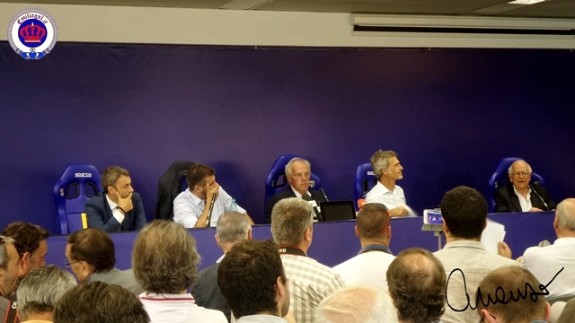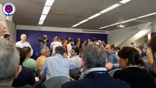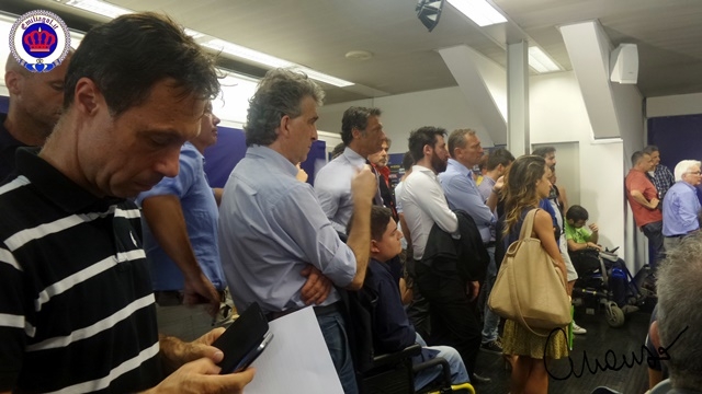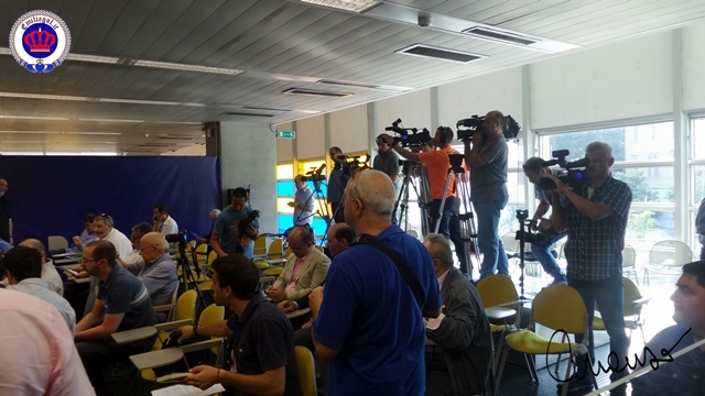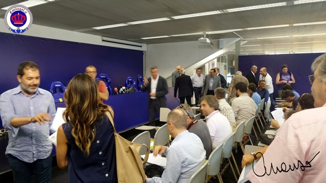 Conferenza stampa: presentata la Società, il Presidnete, il CDA e il DG. Tutti i media italiani erano presenti e Nevio Scala ha preso tanti applausi come se avesse vinto un'altra coppa!