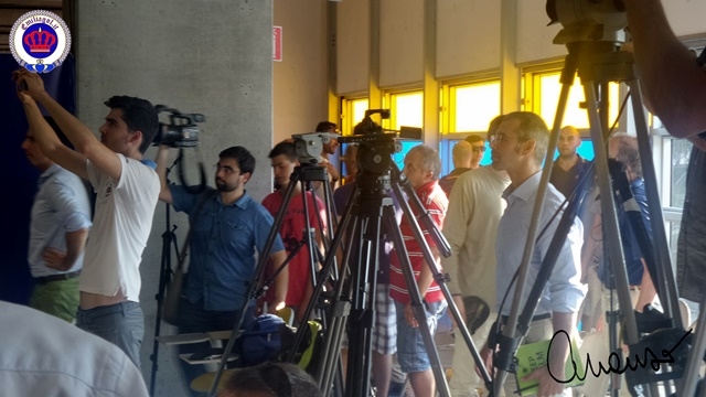 I media parmigiani e italiani erano al gran completo (una cinquantina?), e le Tv che abbiamo contato erano ben otto! Un impatto mediatico in grande stile e davvero di grandissimo effetto, che non facciamo fatica ad attribuire alle notorie capacità organizzative del Direttore Generale Luca Carra. Un effetto e un numero, che non può essere nemmeno paragonato a quello vissuto nella conferenza stampa dei Corrado, che più che i media aveva il minimo! A seren quater gat!