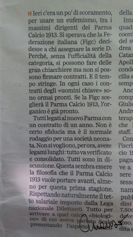 L'articolo di oggi sui contratti annuali del Parma 1913, è fuorviante e del tutto sbagliato! Può succedere solo quando non ci si rende conto, della differenza tra Dilettanti e Pro! Sveglia, ragazzi, siamo in D!
