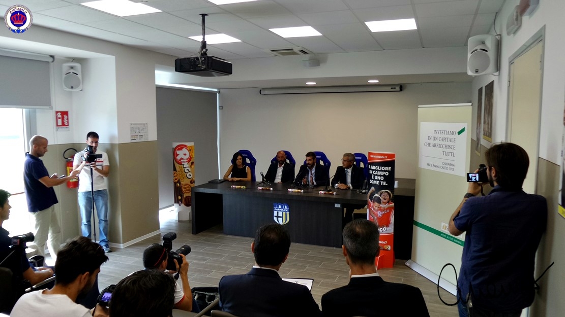 Bymanso - Ringo della linea Pavesi del Gruppo Barilla e Cariparma del Gruppo Crédit Agricole sono da oggi i nuovi sponsor che compariranno sulle maglie del Settore Giovanile e del Calcio Femminile. In pratica, Barilla e Cassa di Risparmio, due "marchi" che fanno parte della storia della città. A presenziare alla conferenza stampa, i maggiori dirigenti del Parma calcio 1913, e i due rappresentanti dei marchi. Per la Ringo, la giovane responsabile del marketing Katia Desogus ha affermato che la sua Società è da sempre sostenitrice dei valori educativi tra i giovani. Ma, aggiunge il manso, anche tra gli ex giovani! E si ve, sono un gran bel consumatore di Ringo (ne ho "rubato" una decina di "rotoli" che erano su un tavolo incostuditi) ! Il Direttore Territoriale Parma di Cariparma Marco Dell'Otti ha affermato che i valori dello sport espressi dal nuovo Parma Calcio, rappresentano quella novità che può contribuire a restituire fiducia a tutto il movimento. Putroppo non c'era "trippa" sul tavolo del bancario, e quindi non ho potuto "rubare" nulla. Ringo si, soldi no!