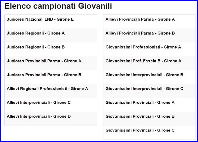 Parma - Programma partite di: Juniores - Allievi - Giovanissimi