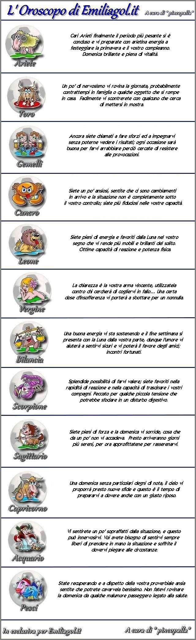 L' Oroscopo della Domenica di Emiliagol - A cura di Pincopalla