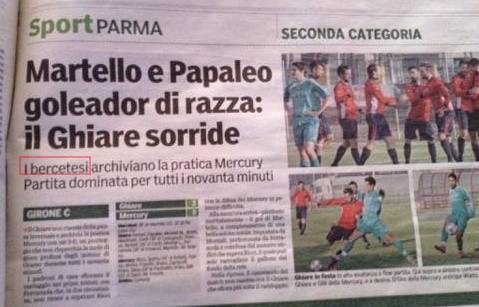 A Ghiare di Corniglio non l'avranno presa benissimo, ma noi difendiamo per una volta la Gazza! Non tanti sanno che una volta c'era la Ghiarese di Ghiare di Berceto, e in Gazza, hanno voluto dare il giusto omaggio ad una Società che ha avuto una discreta storia. Tanti i giocatori della Valtaro e della Lunigiana che hanno giocato con i colori biancoblu (se nn ricordo male). Tra questi, ricordo i f.lli Pellegrini, i f.lli Zucconi, i F.lli Ferrari (mister e giocatori), e per pochissimo anche il manso. Detto questo, cambiate il fornitore di amaro al titolista, ve!