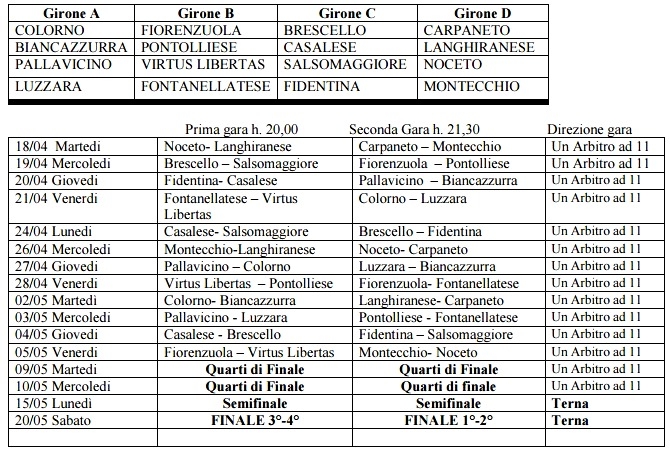 Si parte il 18 Aprile con Noceto - Langhiranese e Carpaneto - Montecchio