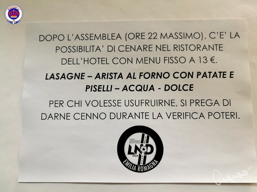 Il regolamento della FIGC prevede che per designare un Candidato alla Vice Presidenza della LND in funzione della base territoriale di appartenenza (l' Emilia Romagna appartiene al Centro) si debba promuovere un'assemblea delle Società della Regione che deve raggiungere il numero legale.