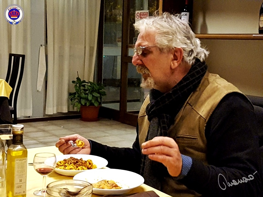 Poi dopo la bella e costruttiva rimpatriata, tutti (eufemismo, vedi foto) a cena a base di lasagne e tortellini al ragù (questi ultimi, solo per il Manso e per pochi altri!).