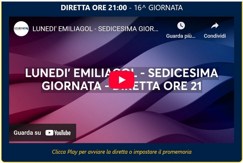 LUNEDI' EMILIAGOL - SEDICESIMA GIORNATA - ON LINE ORE 21